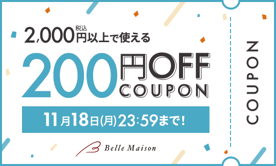 2,000円以上200円OFFクーポン(11/1 0:00~ 11/18 23:59まで)