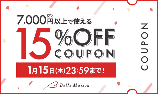 7,000円以上15%OFFクーポン(1/1 0:00~ 1/15 23:59まで)