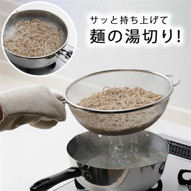5. ゆであげに 便利でご ザル 深型 24cm 日本製 ステンレス製 麺 うどん そば そうめん パスタ 茹で上げ 枝豆 水切り つけ麺 ラーメン アイ