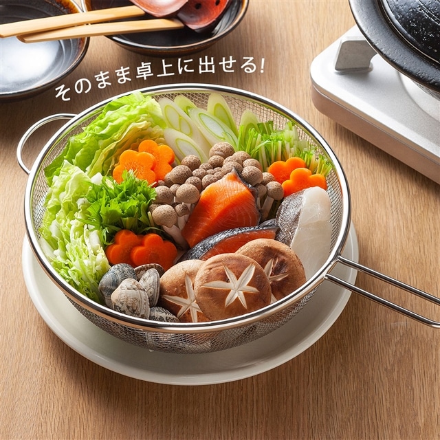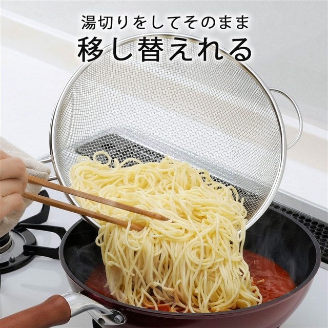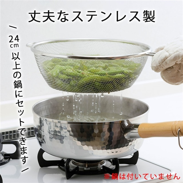ゆであげに 便利でご ザル 深型 24cm 日本製 ステンレス製 麺 うどん そば そうめん パスタ 茹で上げ 枝豆 水切り つけ麺 ラーメン アイ