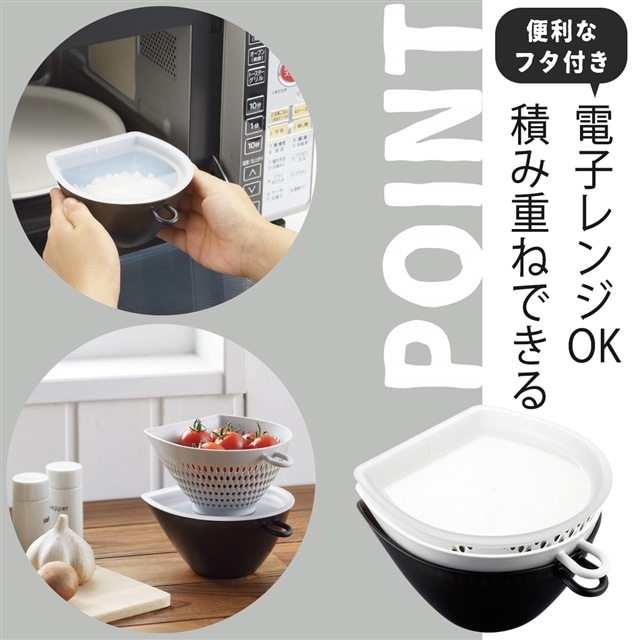 5. フタ付き チリトリザル ボウル M 日本製 小分け 薬味 冷蔵庫 重なる 計量 目盛付き ストック 保存 タッパ ボール ザル 下ごしらえ 調味料 電
