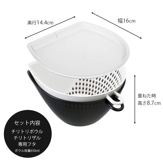フタ付き チリトリザル ボウル M 日本製 小分け 薬味 冷蔵庫 重なる 計量 目盛付き ストック 保存 タッパ ボール ザル 下ごしらえ 調味料 電