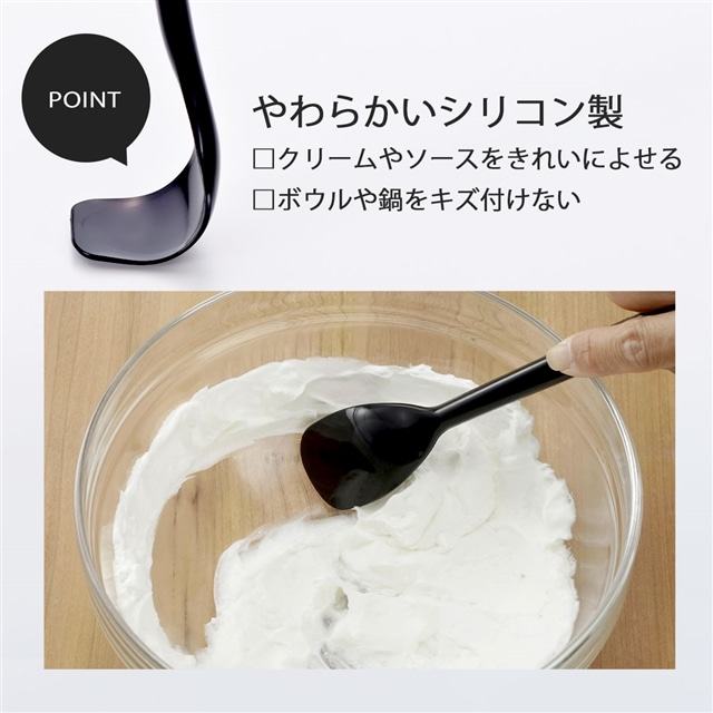 シリコンソフトスプーン ロング ブラック 日本製 食洗機可 一体成型 やわらかい 衛生的 ジャムスプーン 離乳食スプーン 下村企販