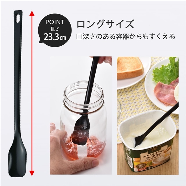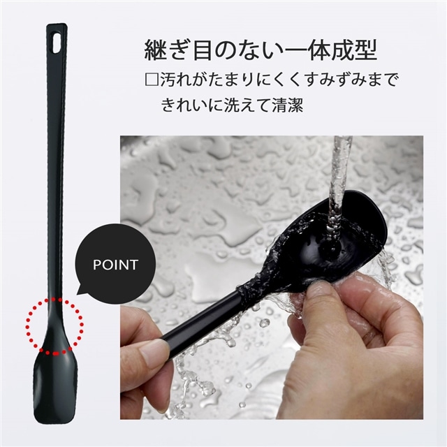 5. シリコンソフトスプーン ロング ブラック 日本製 食洗機可 一体成型 やわらかい 衛生的 ジャムスプーン 離乳食スプーン 下村企販