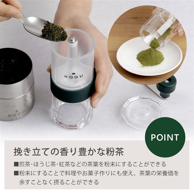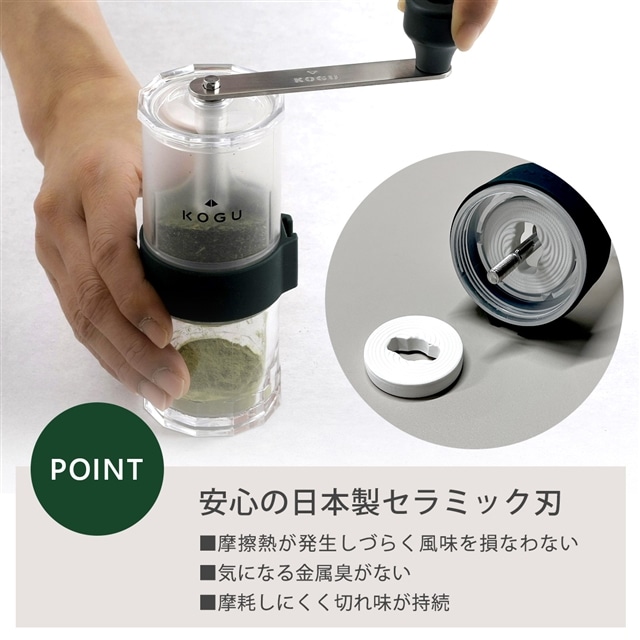 4. 茶考具 お茶ミル 粗さ調節機能付き クリア容器 抹茶 セラミック刃 抹茶ラテ 抹茶塩 お菓子作り プレゼント 贈り物 下村企販