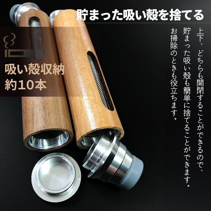 タバコに火をつけましたら、本体にゆっくり差し込んでください。吸い終わりましたら、そのまま本体のケース内に押し込んでください。約10本ほど吸い殻は収納可能ですが、吸い方によっても変わりますので、5本程度までで押す手になることをお勧めします。底面のふたも開きますので、そこから尾捨て下さい。