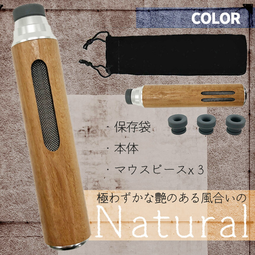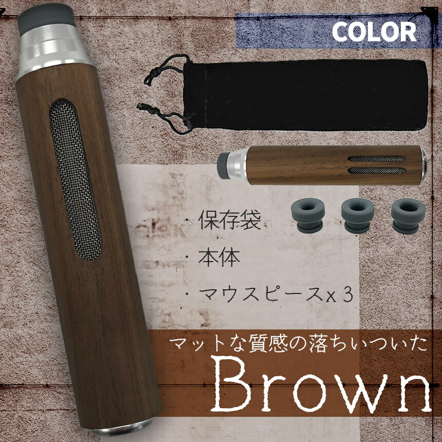 本体は高品質のくるみ木材採用。木の風合いもよくお洒落なデザイン性です。ナチュラルとブラウンの2つの色合いからお選びいただけます。軽量な設計ですので、重くて吸いにくいといったことはありません。3種のシリコンホルダーもセットになっていて、いろいろなサイズのたばこに適応出ます。
