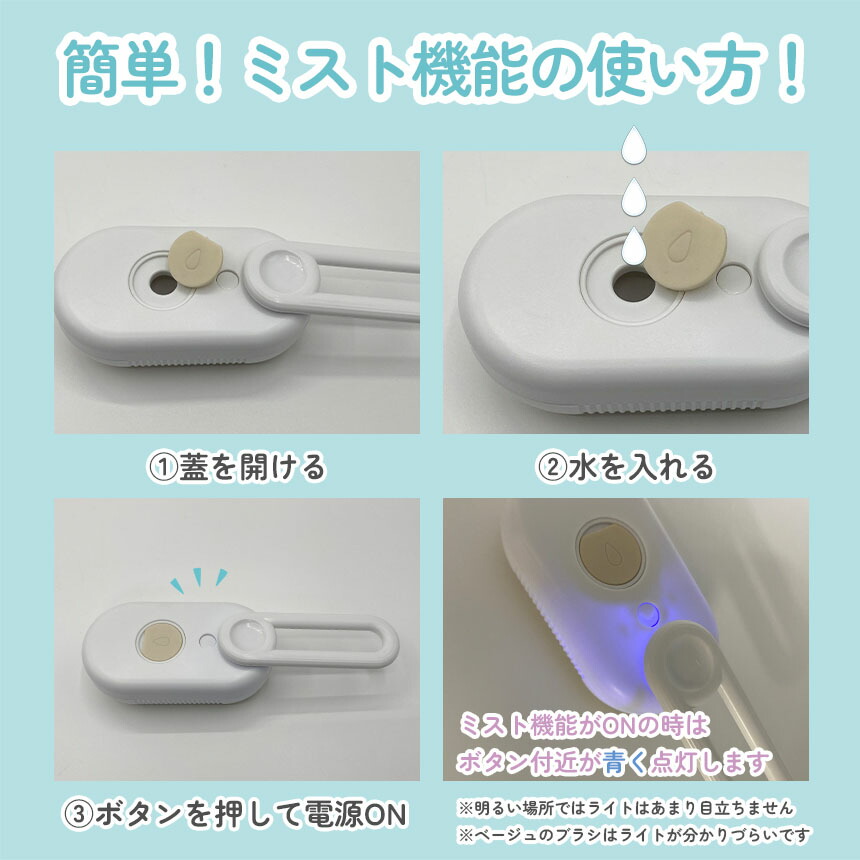 ブラシの中心部分から細かいミストが噴射されるブラシです。