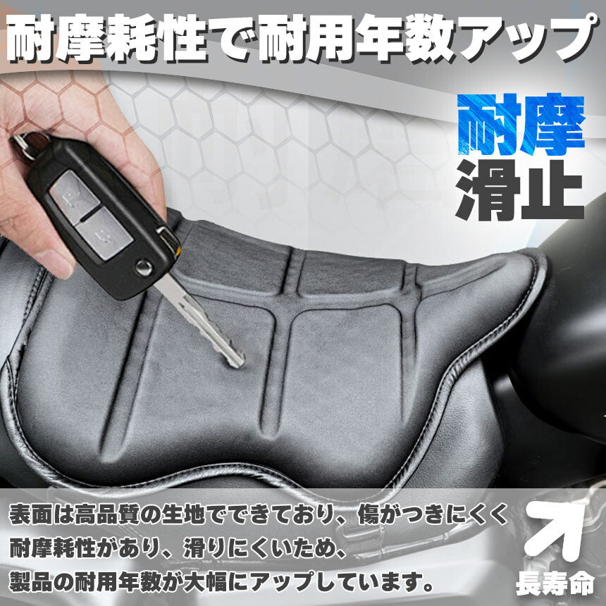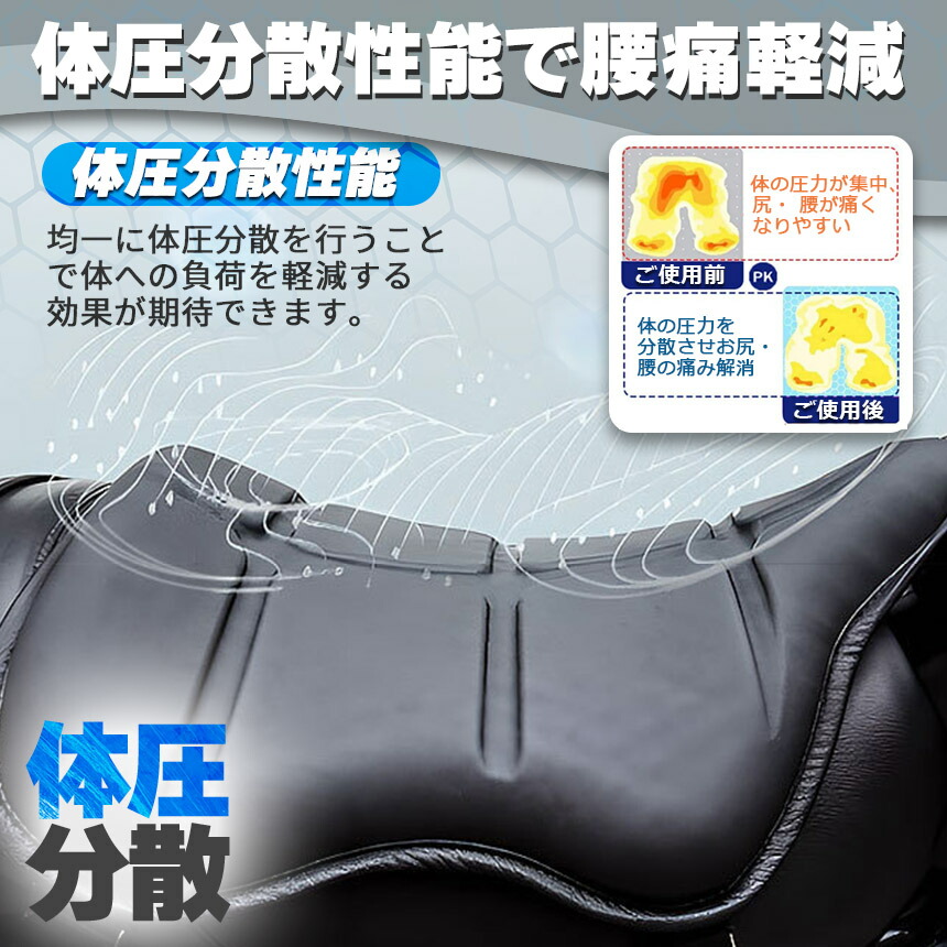 優れた弾力性・復元力の高品質ゲルを採用しており、体型や坐姿勢に合わせて、長時間座ってもお尻をしっかり支えてお尻に不快感を与えません。表面は通気性もよく、耐摩耗性で耐久性があり、同時に滑り止め効果もあります。