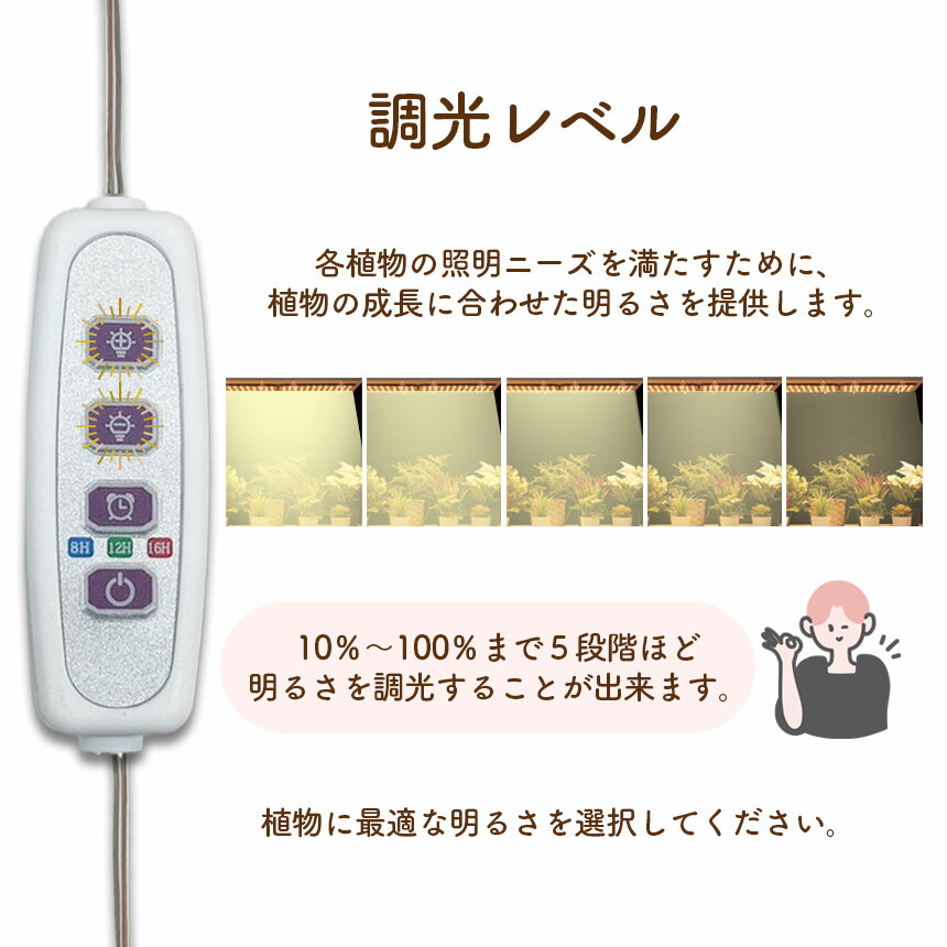5段階で光の調整が可能です。植物の種類や成長に合わせた明るさを提供します。