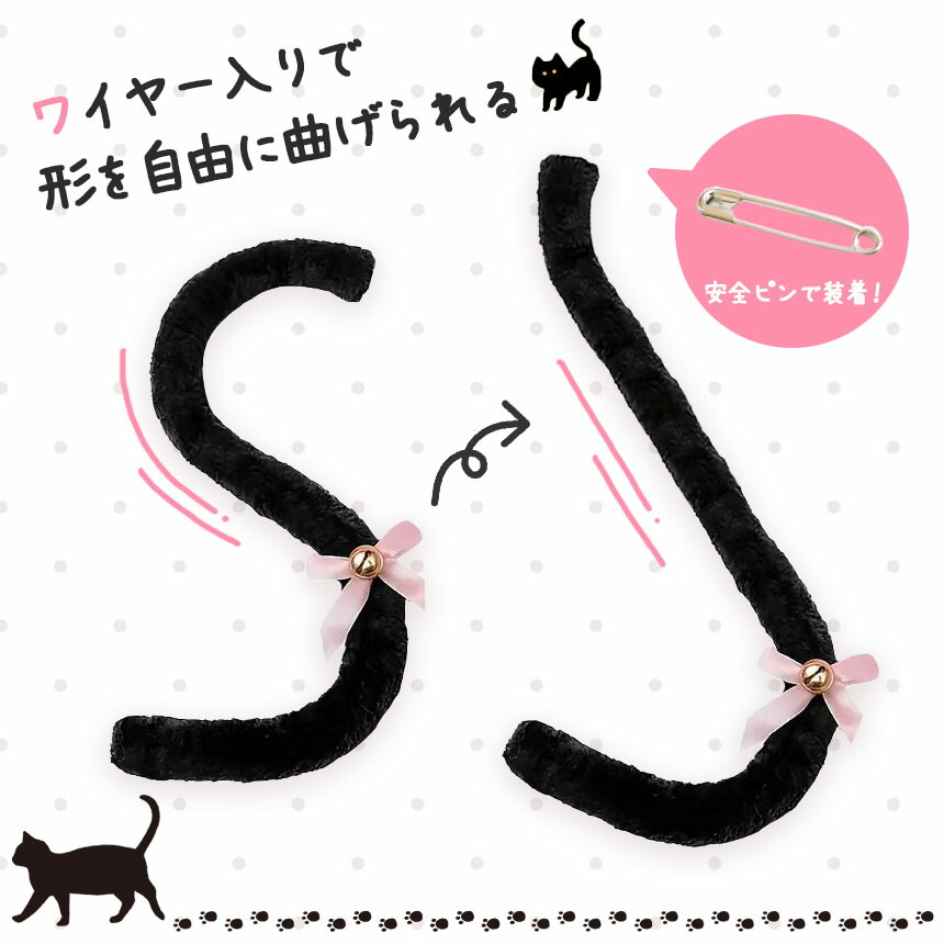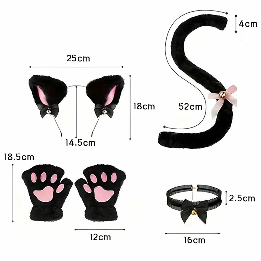 猫耳カチューシャ、チョーカー、グローブ、しっぽの便利な4点セットで、誰でも簡単に仮装ができます。