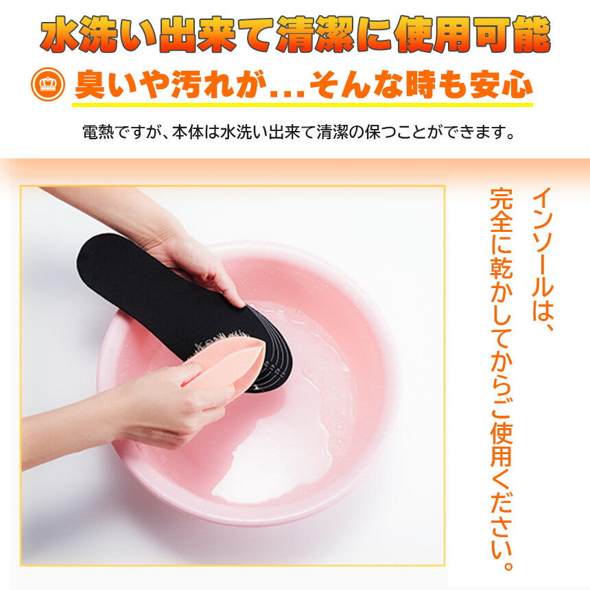 インソールは水洗い可能ですので清潔にお使いいただけます。インソールを完全に乾かしてからご使用ください。(スイッチ付きケーブルから外して洗ってください。)毎日履く靴には2足以上のインソールを1日ごとに交換することをおススメしています。