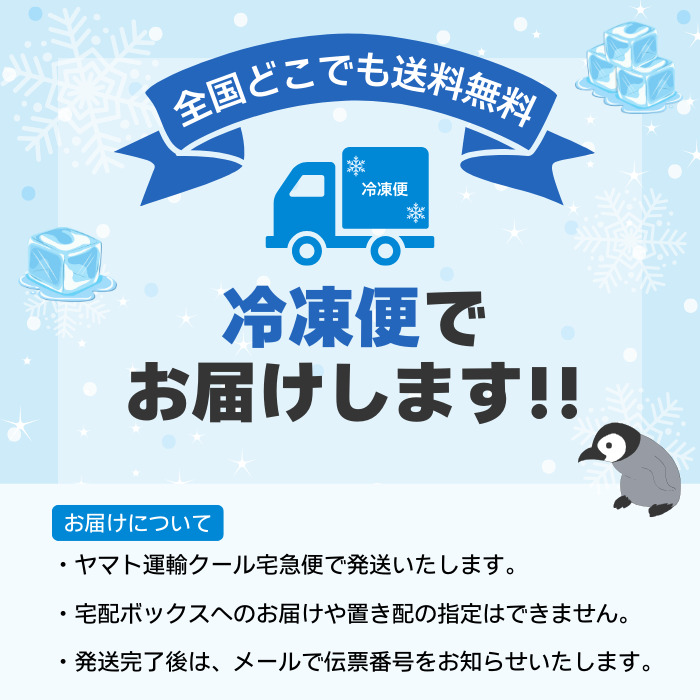 当店の商品はクール冷凍便にてお届けしています。商品の特性上、宅配BOXや玄関前での置き配でのお受け取りはできません。何卒ご了承ください。