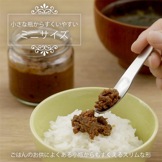 ごはんのお供をすくうのに便利なサイズ。