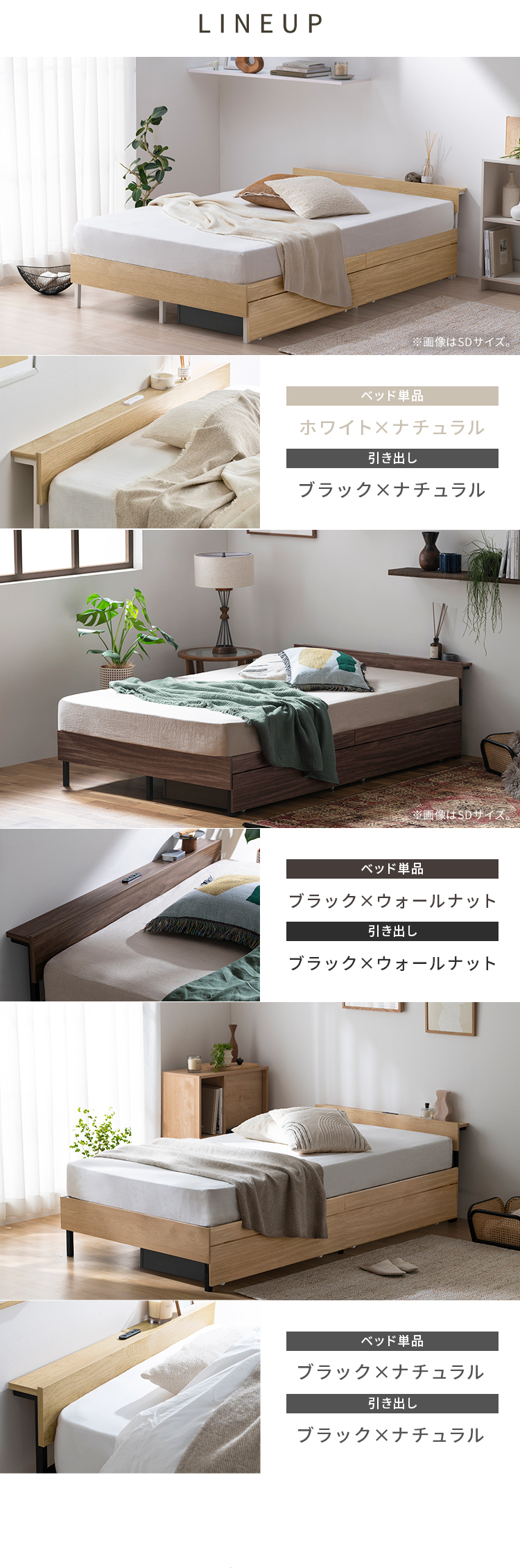 6. ベッド シングル フレーム 引き出し付 ベッド下収納 棚 2口コンセント付 頑丈 木製スチールベッド アイリスオーヤマ SBW02-S SBW-HK * ブラック/ナチュラル