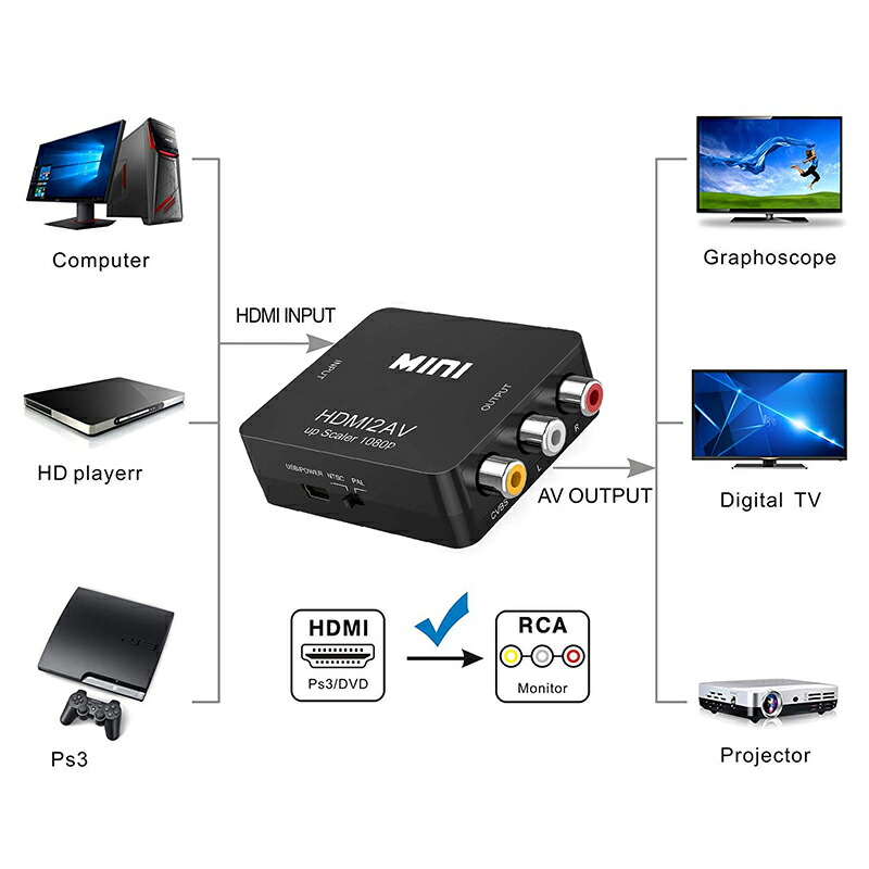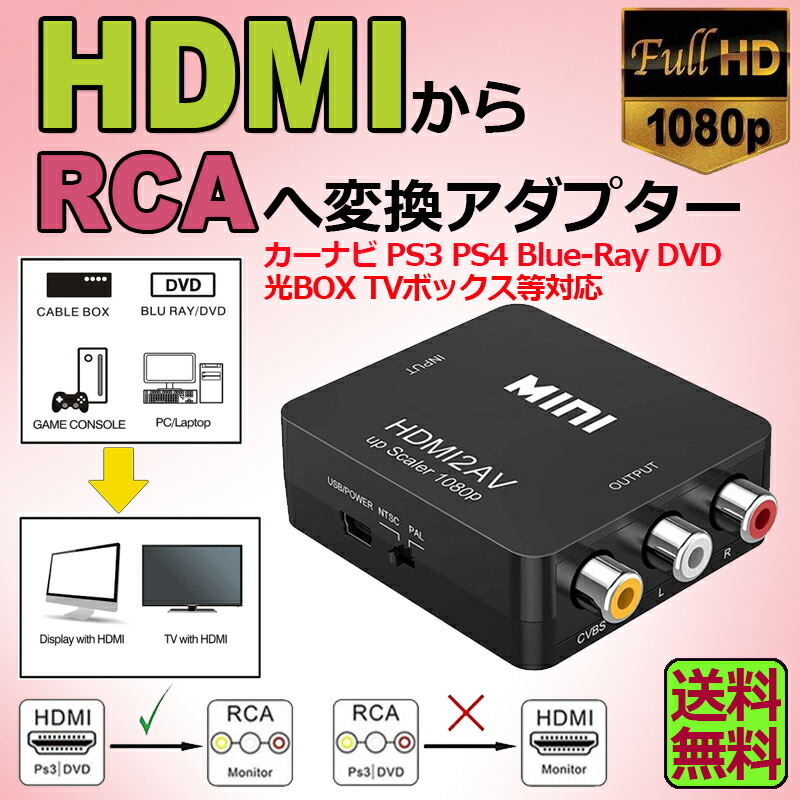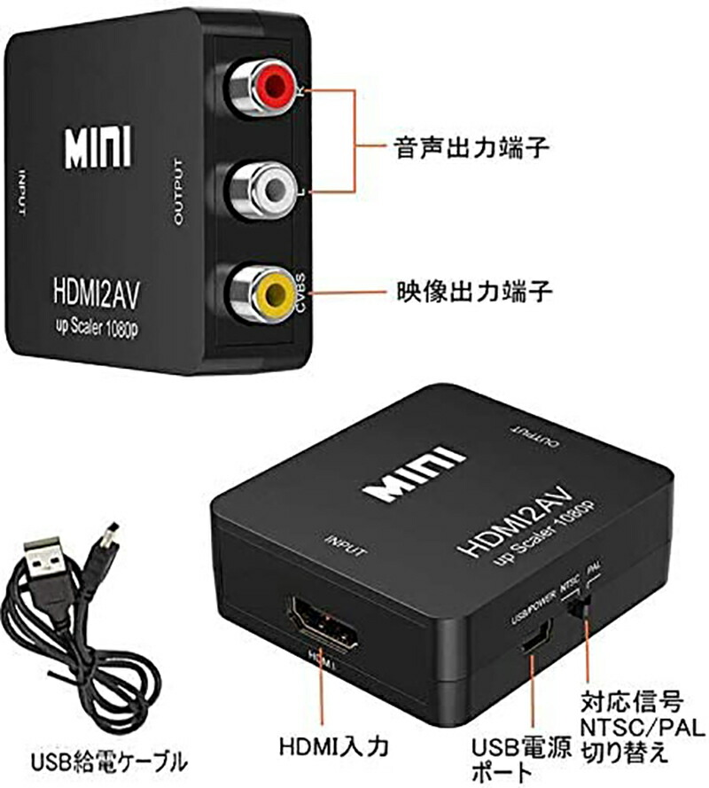 HDMIの映像信号をコンポジット出力(RCA)に変換することができます。