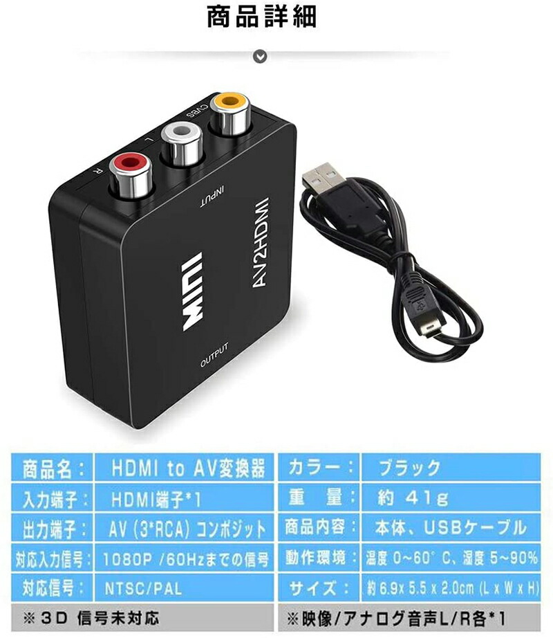 ◆耐久性に極めて優れている上、映像&音声も出力になれます。HDMIの映像信号をコンポジット出力(RCA)に変換することができます。