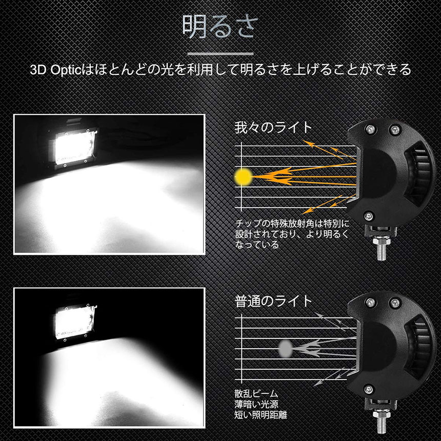 5. 60W 作業灯 LED ワークライト 狭角30度 フラッドライト 12V-24V対応 汎用 車外灯 4インチ 角形 6000K ホワイト 夜釣り 夜間作業 トラクター用 LEDワークライト 新設計 防水 【3個セット(6個入り)】