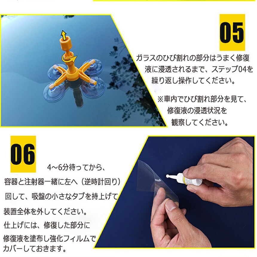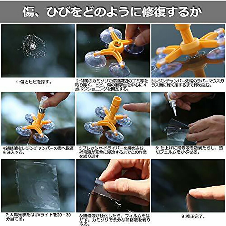 フロントガラス リペアキット 傷 ひび割れ補修 小さな損傷飛び石 修復 飛び石 傷 修理 穴埋め 固定補修 日本語取説付き