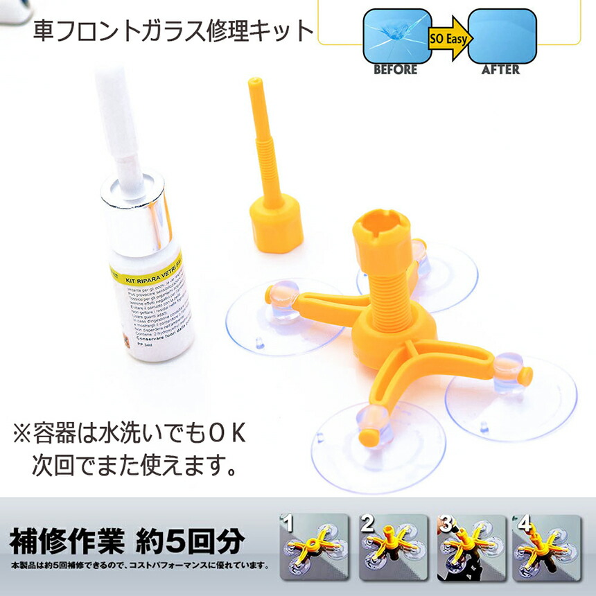 5. フロントガラス リペアキット 傷 ひび割れ補修 小さな損傷飛び石 修復 飛び石 傷 修理 穴埋め 固定補修 日本語取説付き【1個】