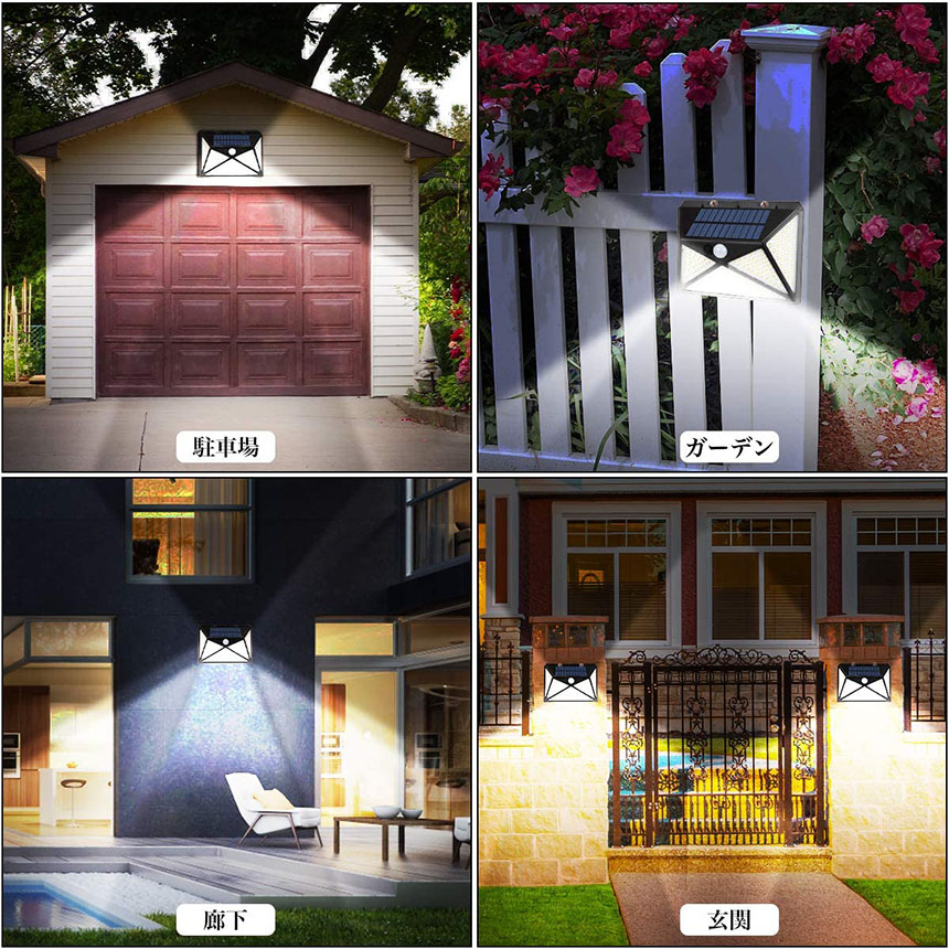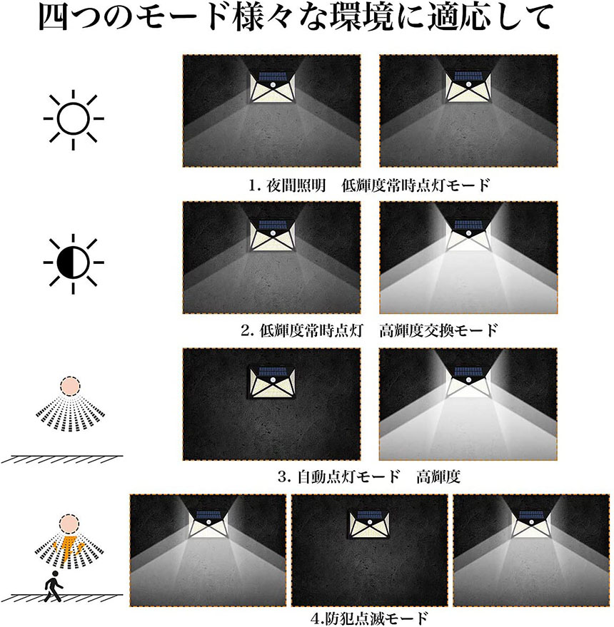 【4つの点灯モード】ソーラーラーライトは4つのスマートモードを搭載しています。 体感センサーと光センサーを内蔵しており、約8m以内の動きと120度の動きを検知することができます。 人が12~20秒離れると自動的に電源が切れます。深夜に帰宅しても周りが見えやすい。