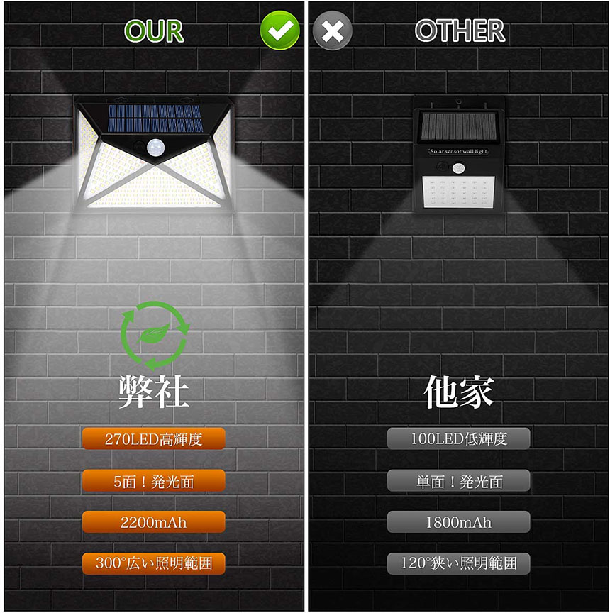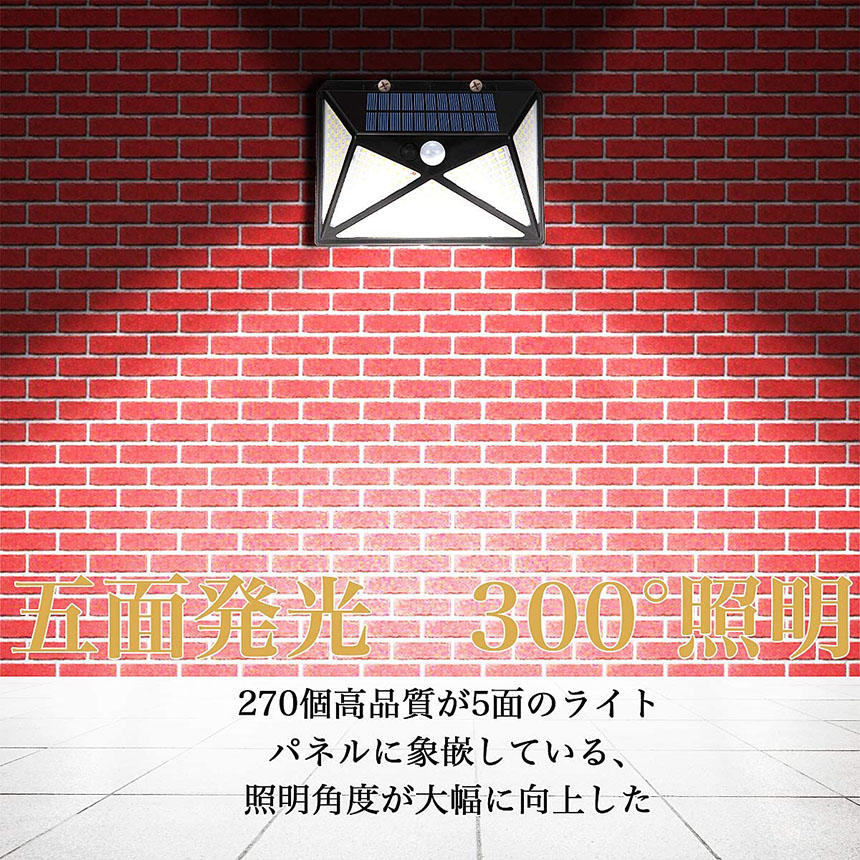 【270LED・300°照明・5面発光】このセンサーライトは270個LEDライトを搭載しています。 300°までの照明角を持つユニークな5面発光デザイン設計により、照明効果が優れています。おすすめ場所: 通路、ポーチ、ドアポスト など。