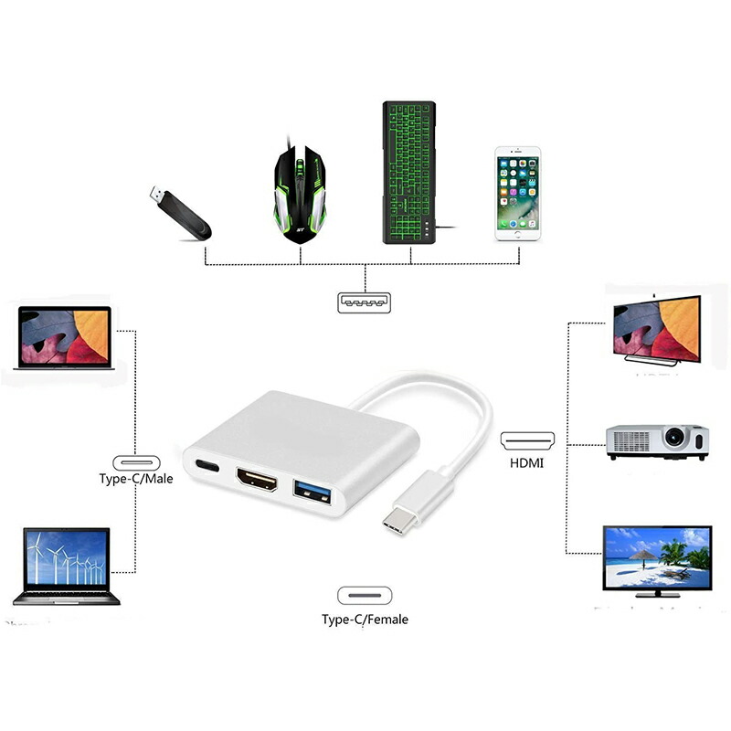3つの必須ポートだけ殘して、Type-c電源ポート、HDMIポート、USBポートビデオ出力機器。