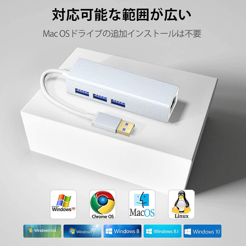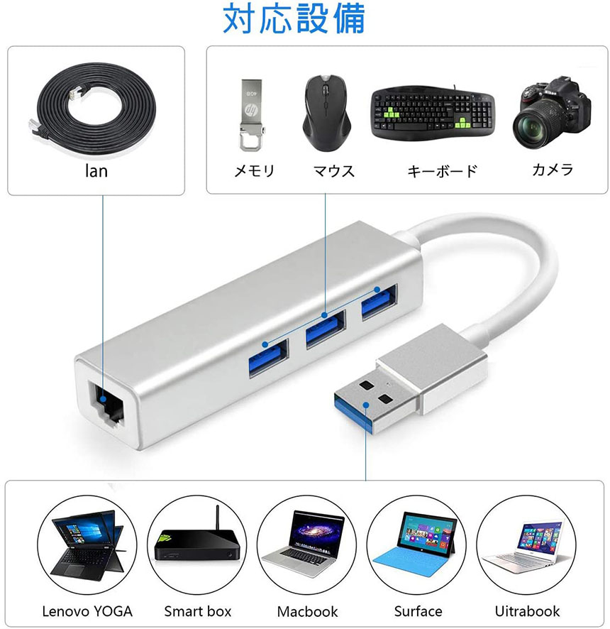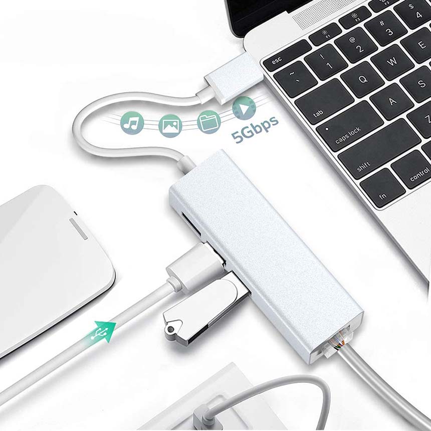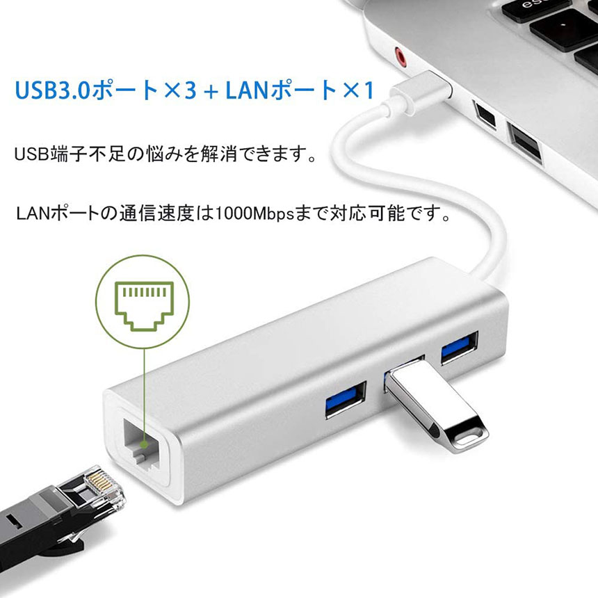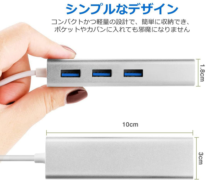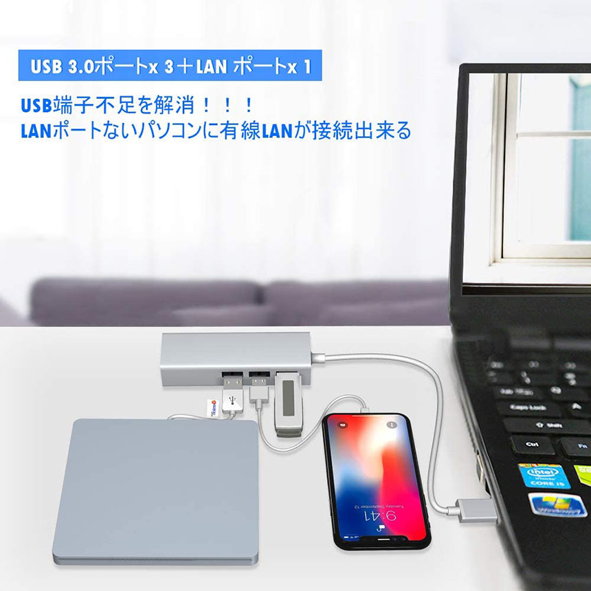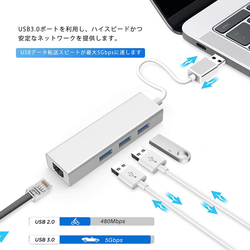一つのハブでUSB3.0ポートを拡張できて、1000Mbpsネットワークを接続することができます。