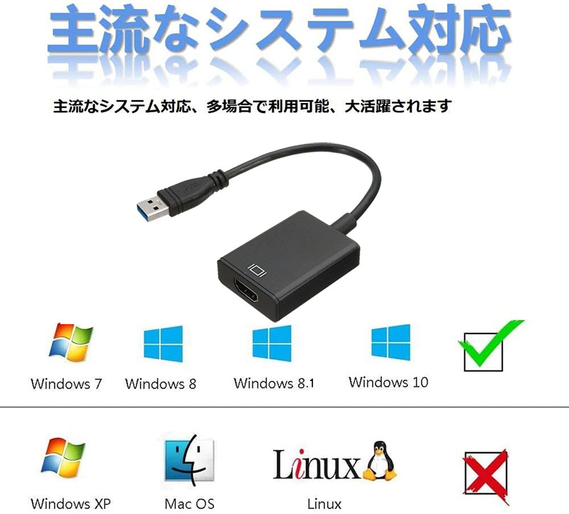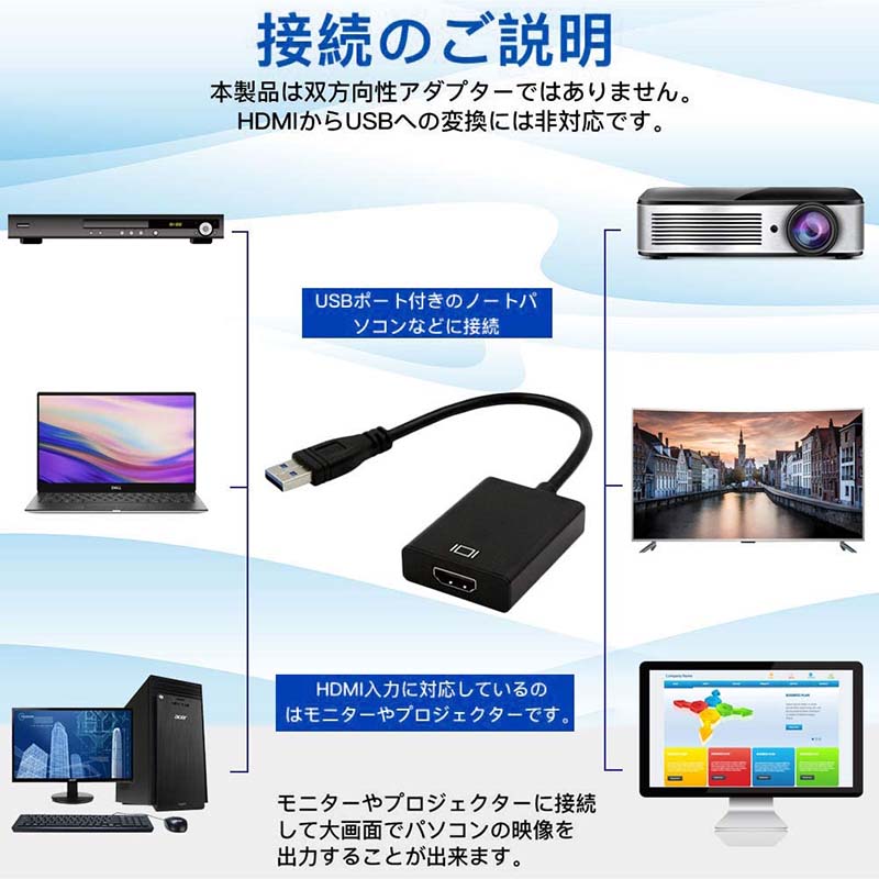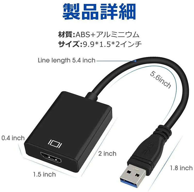 USBバスパワー駆動に対応し電源供給が不要となり使い、便利です。 製品には拡張モードと複製モードあり、自分必要なモードを選択可能。 ホーム映画、ゲーム、会議及び教育などには便利です。 製品互換性:USB 3.0 インターフェース。USB 2.0への下位互換性あり。