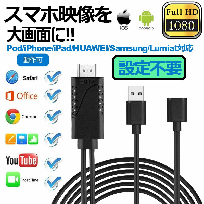 【1080P高解像度】本ライトニング/Android HDMI 変換ケーブルルはFaceTime、Skype、WhatsAppのビデオ通話をサポートします。Facebook、YouTube、Twitter、Instagram、 Reddit、Pinterest、Snapchat、IDMB、Microsoft Office上のストリーミングビデオ、写真、ゲーム、スライドは1080Pハイビジョン大画面で表示できます。
