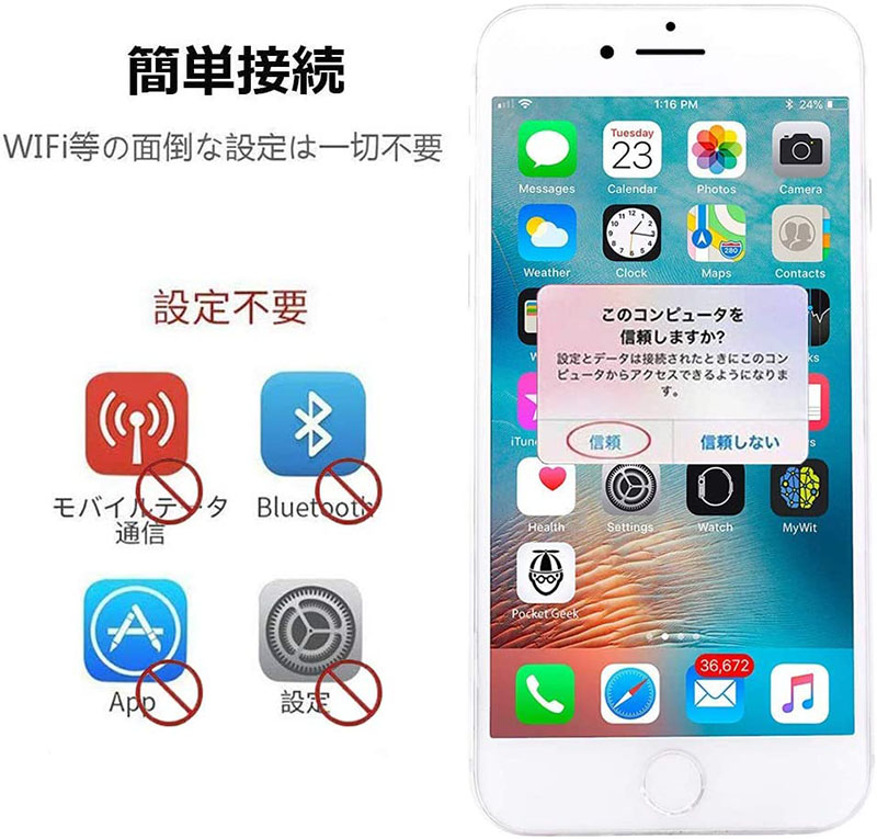 「このコンピュータをしんらいしますか?」というメッセージがiPhone側に出ますので、「しんらい」を選択します。