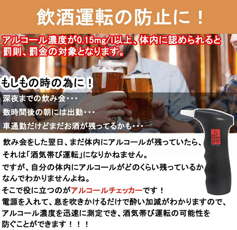 【高感度・高精度 ★ アルコールチェッカー】本製品は高感度半導体センサーで、迅速に呼気中のアルコール濃度をテストでき、