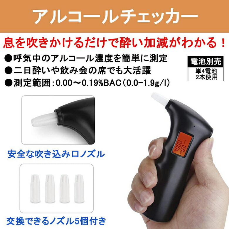 【衛生・便利 ★ アルコールチェッカー】吹き込み口を五つ付きで、同時に五人使用ができます。吹き込み口の取り替えにより、