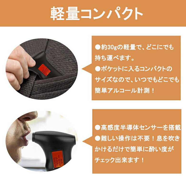【軽量で携帯便利 ★ アルコールチェッカー】持ち運びが簡単なデザインで、ポケットやバックパックに入れることができます。
