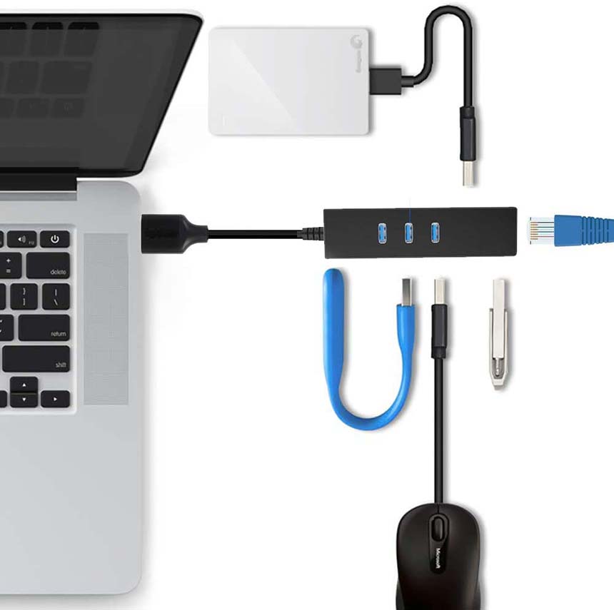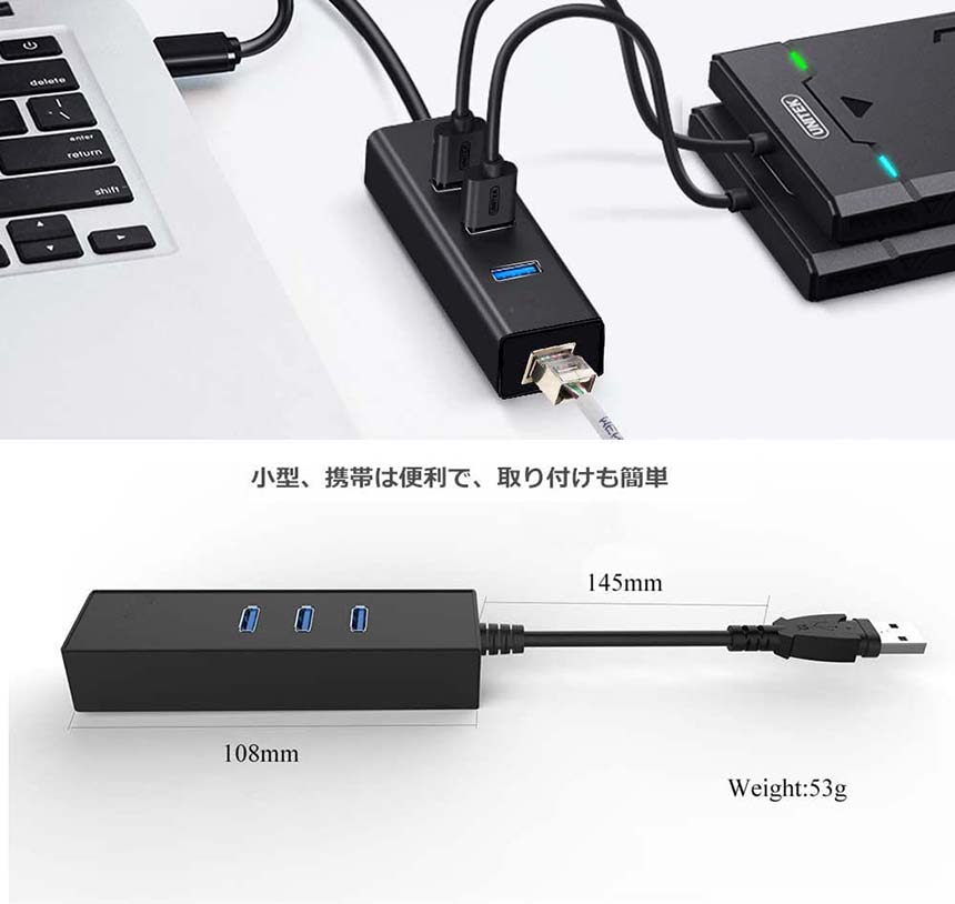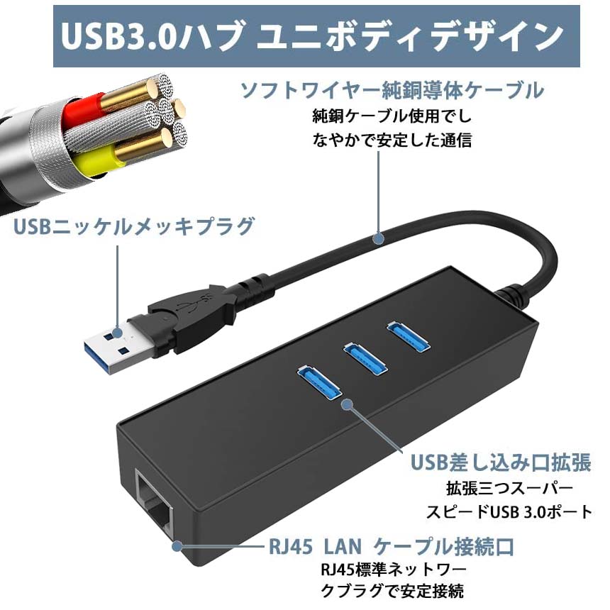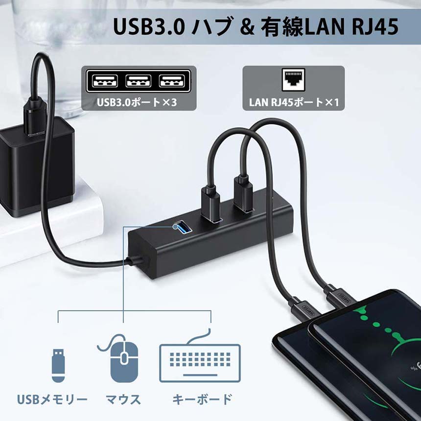 USB3.0ハブ 1000Mbps有線LAN 4ポートアダプター RJ45 変換アダプタ 5Gbps高速USB拡張 高速伝送 USB3.0ポート×3+ネッ