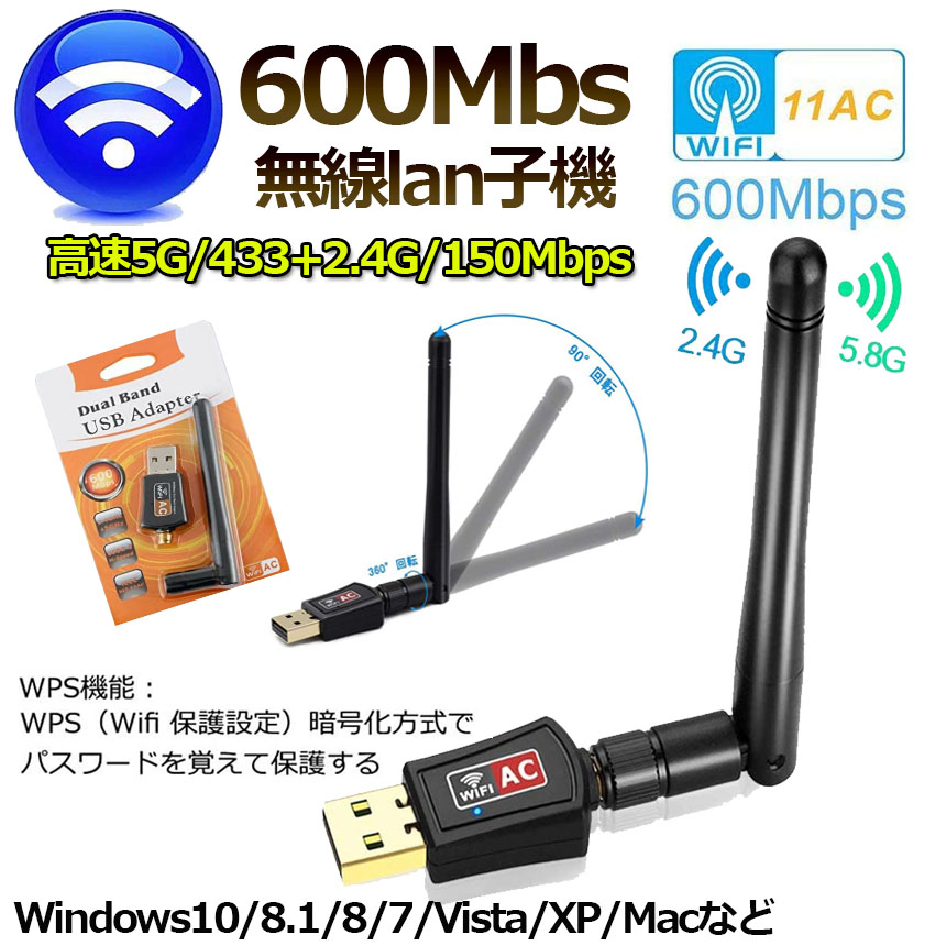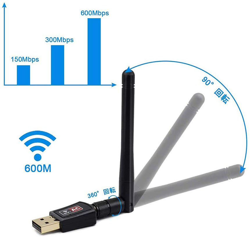 【ゲームの高速度実現】この無線LAN子機は高速600Mbps(理論値)の快適なインターネットへアクセスが実現する可能です。転送速度がUSB2.0を採用し、より高速で安定なインターネット接続することを確保します。速度の高い要求であるゲームも流暢に楽しめ、インターネットサーフィンやオンラインゲームに最適です。