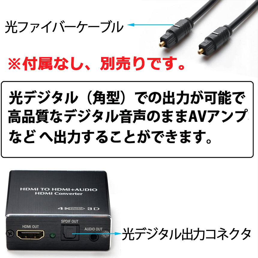 【給電不要】シンプルのプラグ及びプレー機能である!HDMIから入力して、映像をHDMIから出力、音声をSPDIFと3.5MMオーディオで出力します。