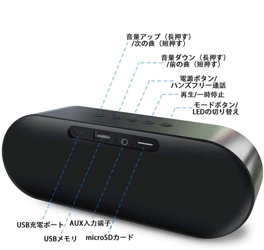 bluetooth5.0 スピーカー ワイヤレススピーカー マイク搭載 高音質 重低音 充電式 大音量 ブルートゥーススピーカー usb LED スマホス