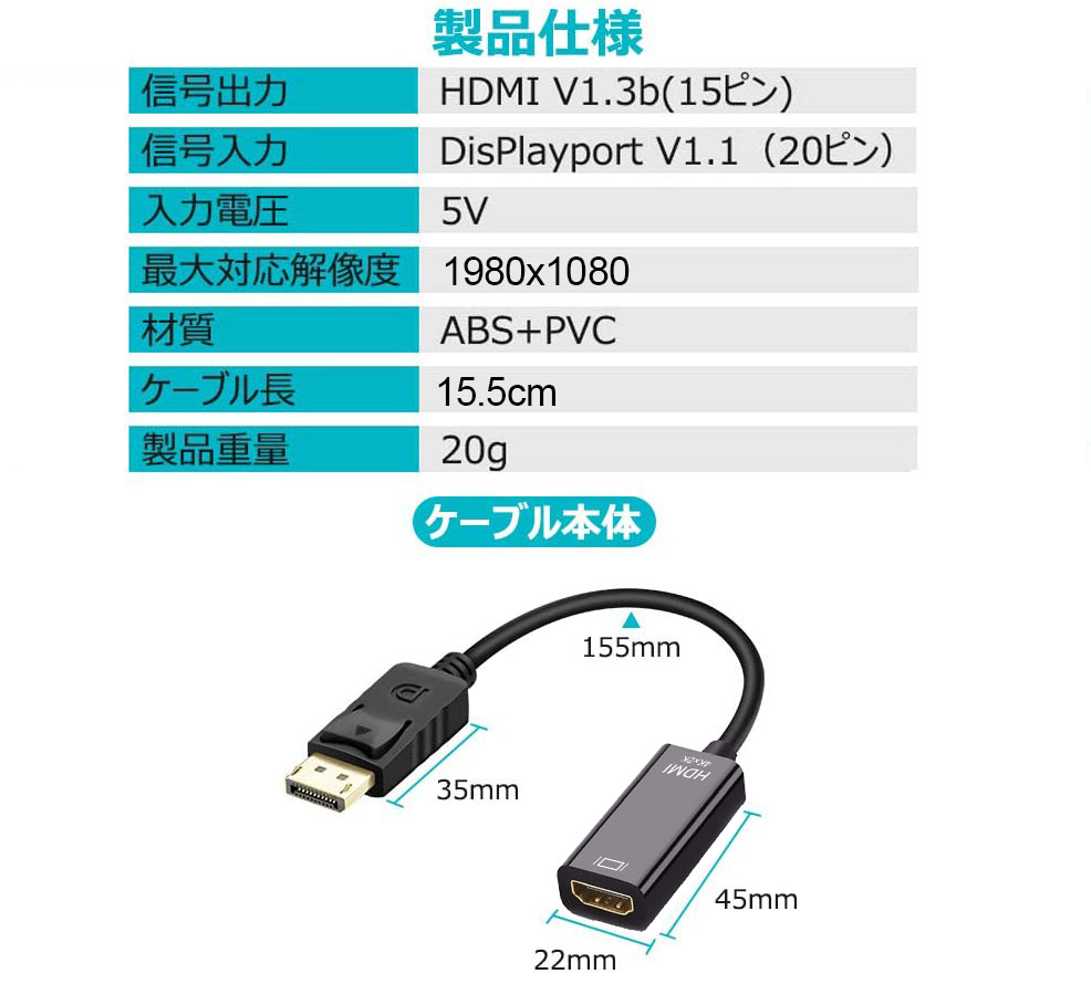 DisplayPort HDMI変換アダプター 4K解像度対応 ディスプレイポート to HDMI 変換コネクター DP HDMI 変換 ケーブル Len
