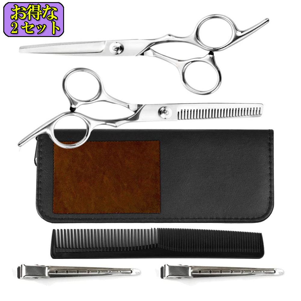散髪 ヘアカット はさみ7点セット お得な2セットお届け ステンレス製 セルフ ヘア カット ハサミ すきバサミ 初心者 プロ並み仕上がる キッズ 美容師