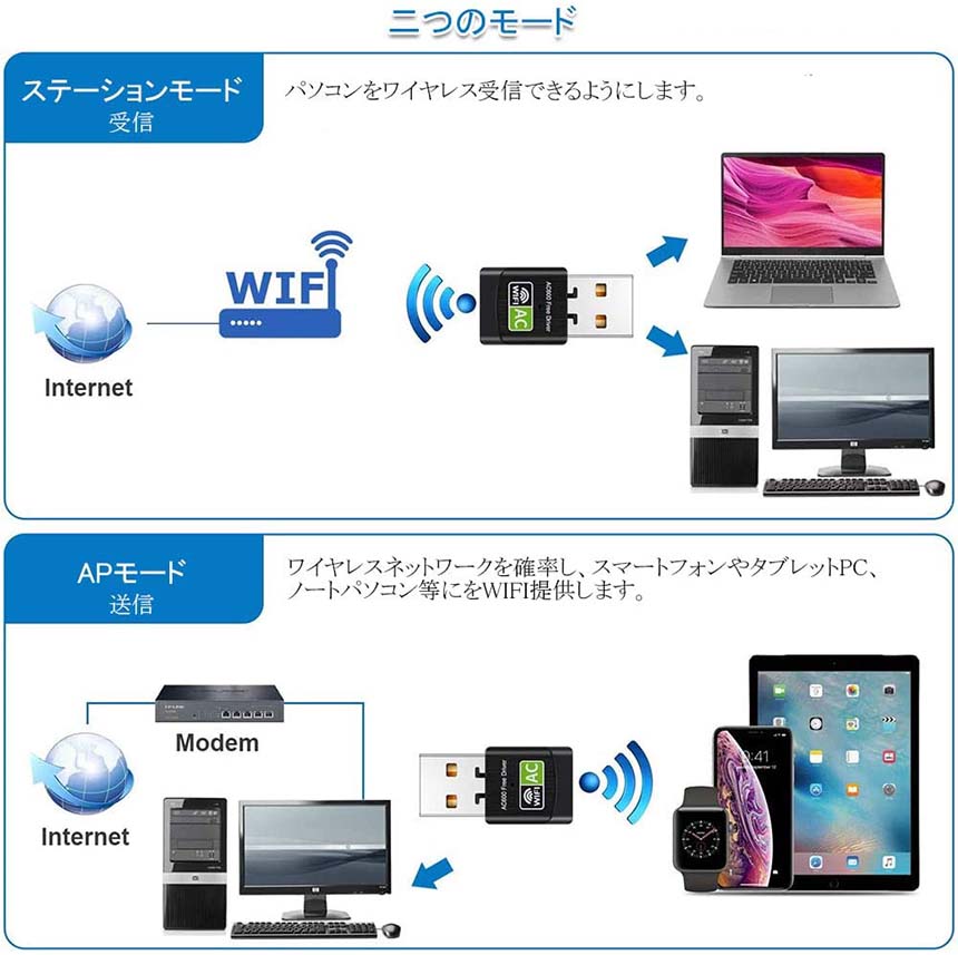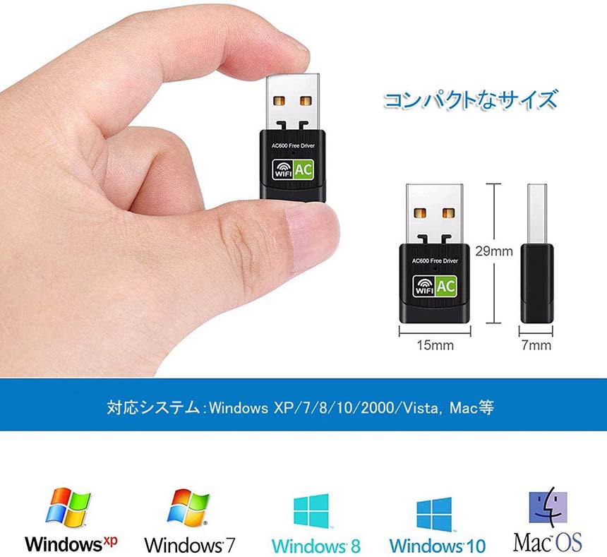 【対応システム】USB2.0を搭載したWindows XP/7/8/10/2000/Vista,Mac等、データ転送速度(規格値)11ac:最大433Mbps、11n :最大300Mbps、11a:最大54Mbps、11g:最大54Mbps、11b:最大11Mbps。