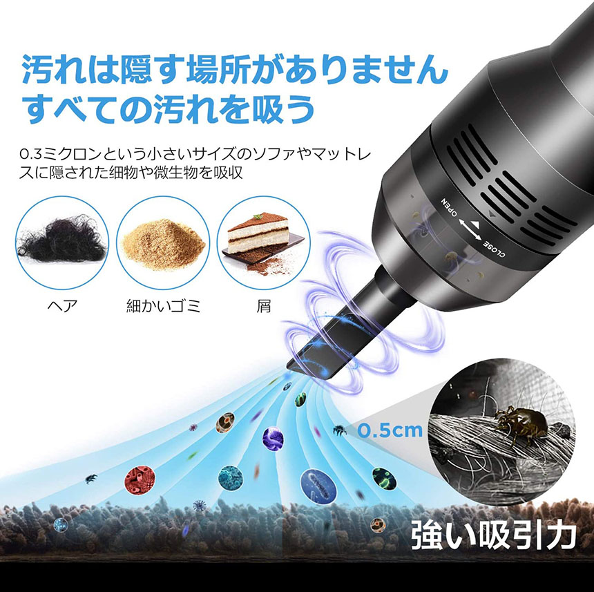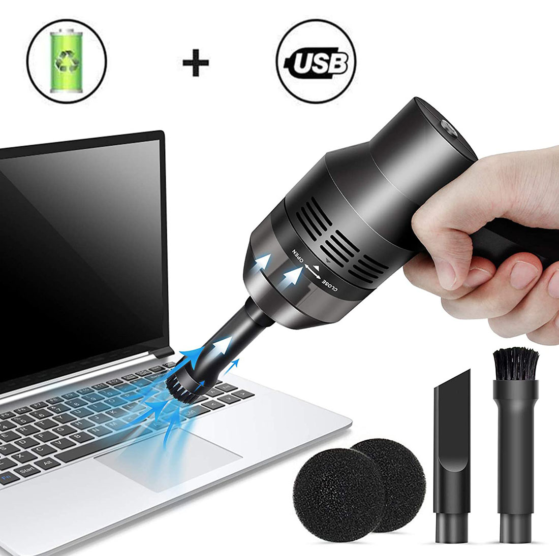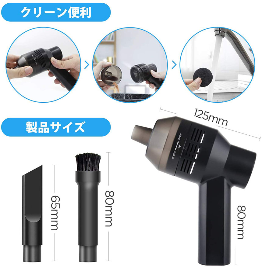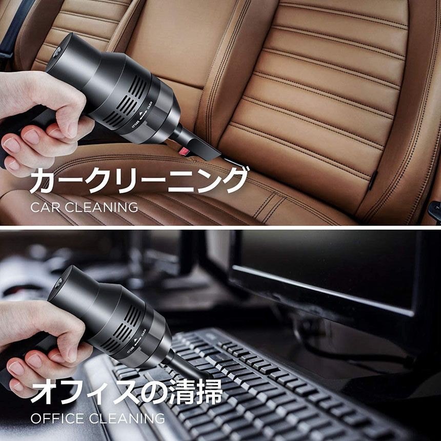 【USB充電可能】本ミニクリーナーにはUSB充電式設計を採用し、2000mAhの電池は搭載されています。普通のUSB給電掃除機より、吸引力ももっと強いです。多数のUSBポートに連接し充電でき、パソコンのUSBポートにも適用です。作動する時、外部がらの電源は不要です。