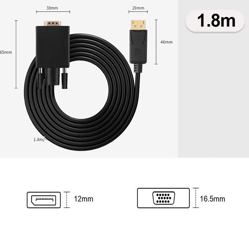 ケーブルは、DisplayPort出力を備えたラップトップまたはコンピューター、VGA入力を備えたモニターを接続するために使用されます。 反対方向には機能しませんでした。