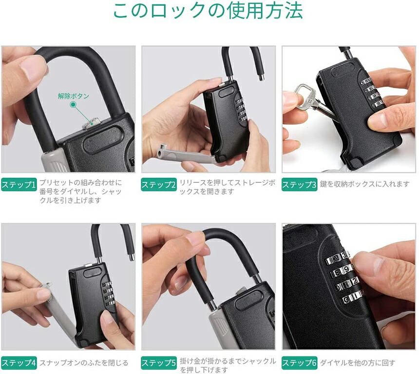 【使用用途】 キーボックスは多くの場面で活躍します。複数の人間が鍵を使用する場面、「民泊」や「工事現場」での鍵の管理がとても簡単です。不動産管理に・アウトドアに・学校、企業、各種介護の現場等の使用に役立ちます。
