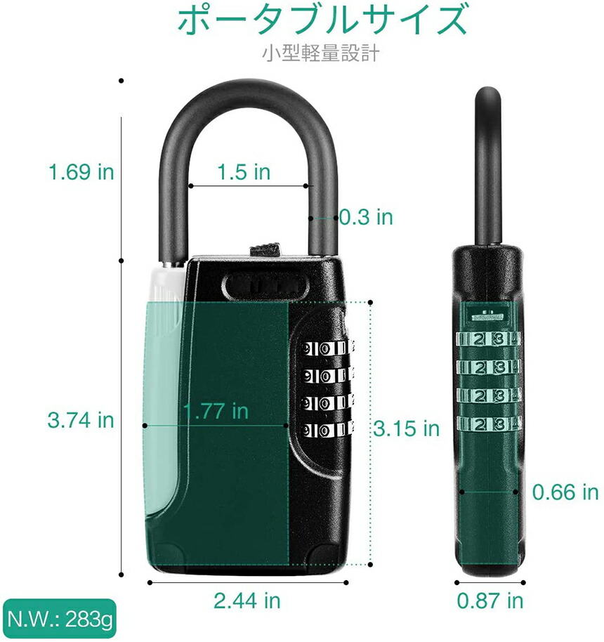 【セキュリティ性】10000通りの4桁の番号から好きな組み合わせを選ぶことができます。4桁ダイヤルは3桁のものよりも約10倍高い安全性があるといわれています。また4桁の組み合わせは覚えやすく、リセットするのが簡単です。キーなどは紛失して開けられなくなる心配がありません。本体内部に収納できるため、外側から収納物が見えなく、屋外に取り付けても安心してご使用いただけます。