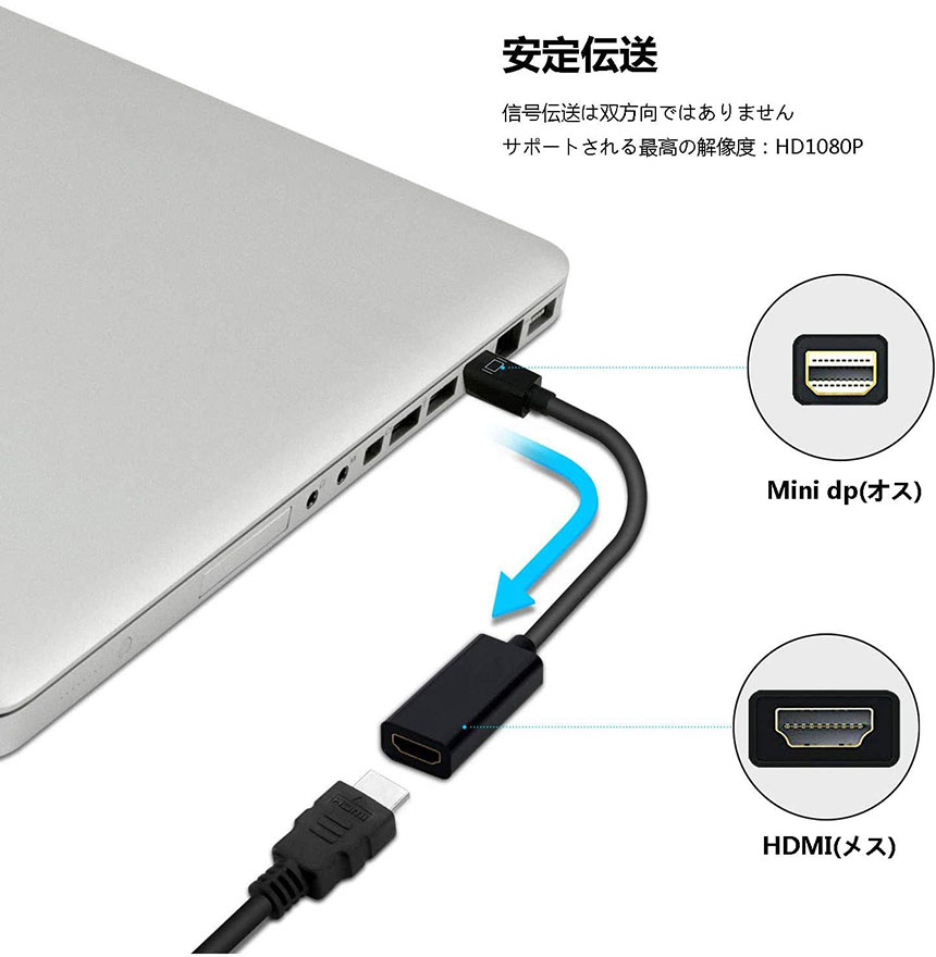 Mini DisplayPort (MiniDP)信号をHDMI信号に変換するアダプタです。HDMIポートが付くHDTV、モニタ、プロジェク タ、