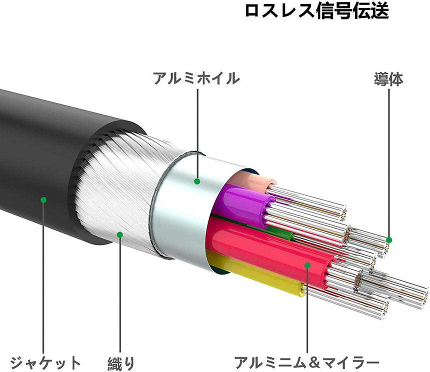 耐久性:耐腐食性と耐久性がある金メッキコネクタを採用して、経年変化による信号劣化の心配が少ないです。