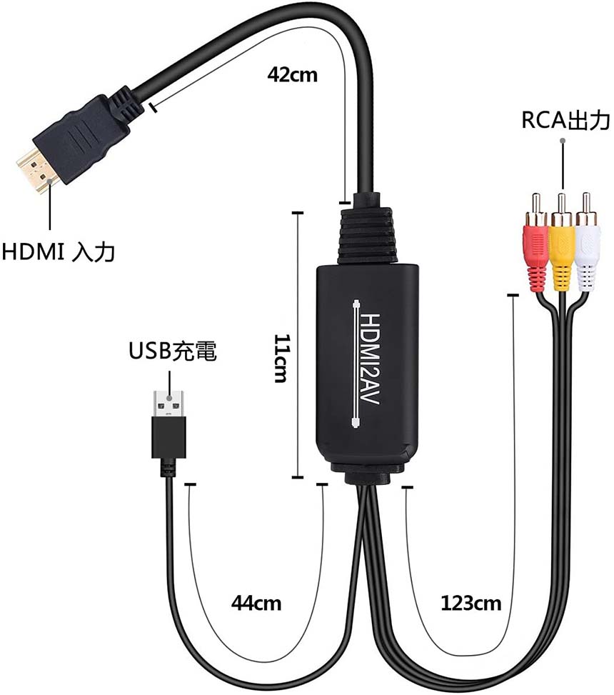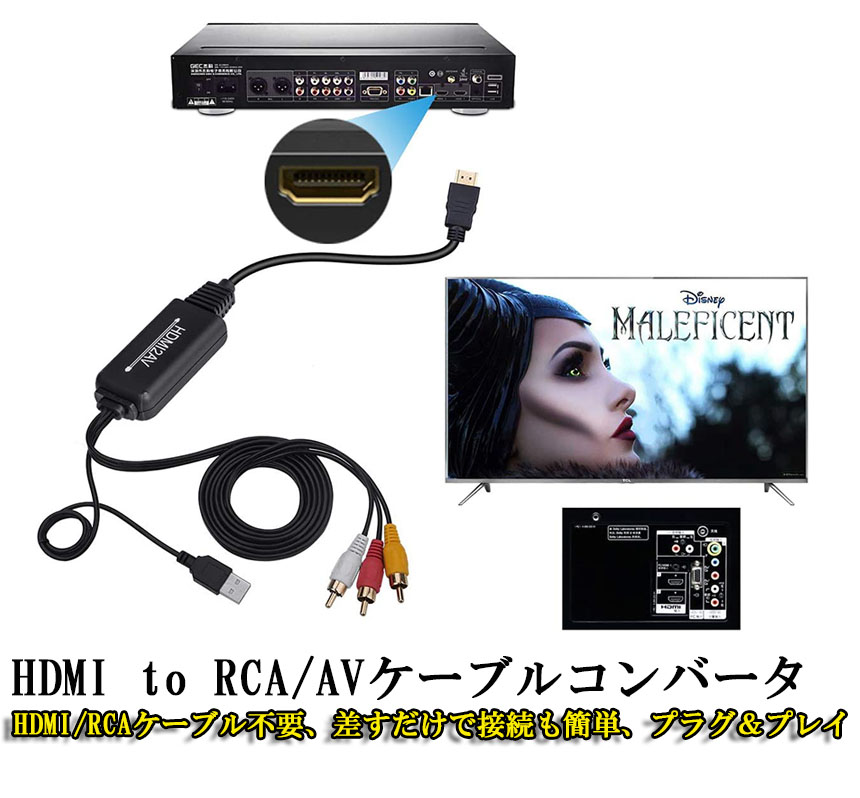 【HDMIからRCAへ 変換ケーブル】HDMI2AVコンバーターは、HDMI映像信号をアナログコンポジット(RCA)に変換することができます。HDMI入力のないモニターに変換アダプタを接続するだけでHDMI対応機器機器の映像や音声を映すことができます。※逆方向(AV to HDMI)にはご使用できません。