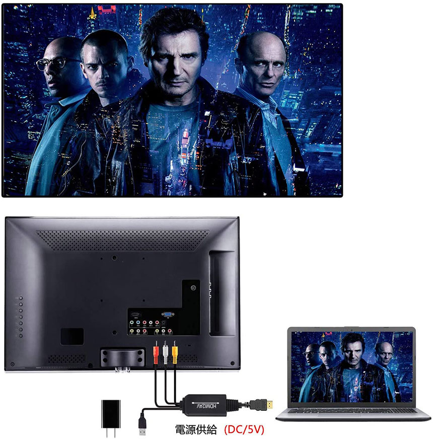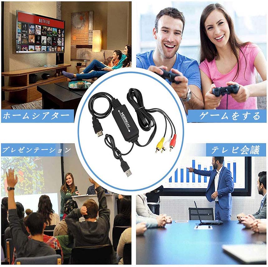 【適用機器】HDMIプラグを、Switch/PlayStation 4 / XBOX / PS4 / PS3 / PC / TV Box / プロジェクターなどのHDMI出力を持つ任意のデバイスに接続します。それに、モニター/テレビ/ HDTV / TVボックス/プロジェクターなどのRCA入力を備えたディスプレイにRCAの端を接続します。一部のデバイスでは、付属のUSBケーブルで電源を供給する必要があります。