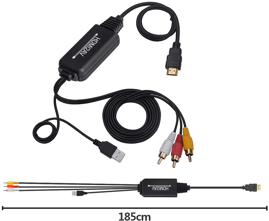 【コンバータ内蔵】古いテレビ/ディスプレイで新しいHDMIデバイスを再生します。他のHDMI - RCAケーブルとは異なり、このコンバータは内蔵コンバータを備えています。余分なコンポーネントが不要になるため、お金を節約できます。RCA、AV、コンポジットは同じ時間です。